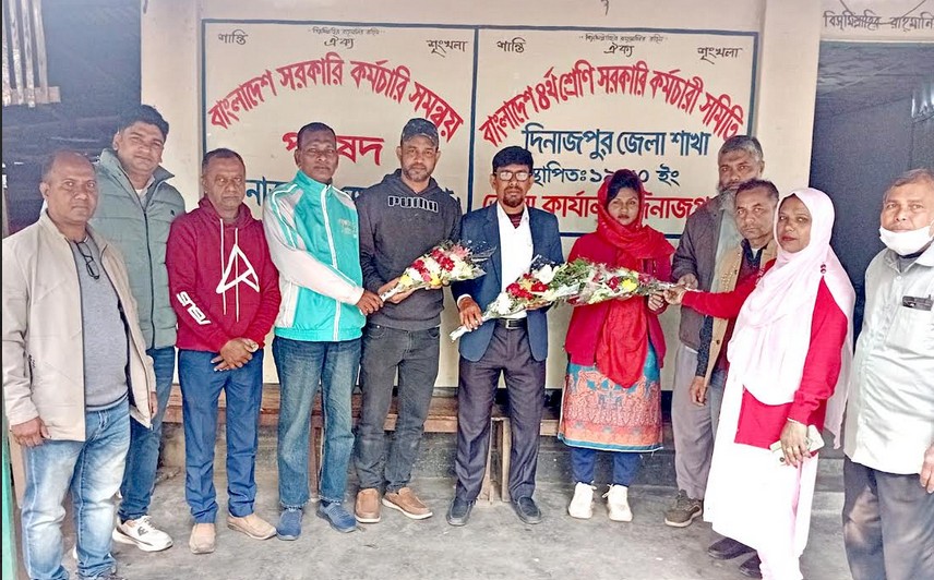 দিনাজপুরে বাংলাদেশ চতুর্থ শ্রেণি সরকারি কর্মচারী সমিতির ৩ সদস্য পদোন্নতি পাওয়ায় সংবর্ধনা প্রদান