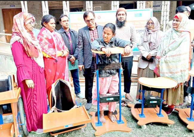 কাশী কুমার দাস, বিশেষ প্রতিনিধিঃ ২২ জানুয়ারী বৃহস্পতিবার দীপশিখা এর বাস্তবায়নে ও লিলিয়ান ফন্ডস এর অর্থায়নে, সেন্টার ফর ডিজএ্যাবিলিটি ইন ডেভেলপমেন্ট (সিডিডি) সার্বিক সহযোগিতায় ”দি মিনিংফুল পার্টিসিপেশন এন্ড ইনক্লুশন অফ চিলড্রেন এন্ড ইয়থস উইথ ডিজএ্যাবিলিটিস ইন অল ডোমেইনস অফ কমিউনিটি বেসড রিহেবিলিটেশন” প্রকল্পের অধীনে সিভিল সার্জন দিনাজপুর ডা. মো: আসিফ ফেরদৌস এর সভাপতিত্বে ২৩ জন প্রতিবন্ধী শিশু ও যুবদের মধ্যে সহায়ক উপকরণ (হুইল চেয়ার, ওয়াকিং ফ্রেম, স্ট্যান্ডিং ফ্রেম, করর্ণার ফ্রেম, টয়লেট চেয়ার) বিতরন করা হয়।