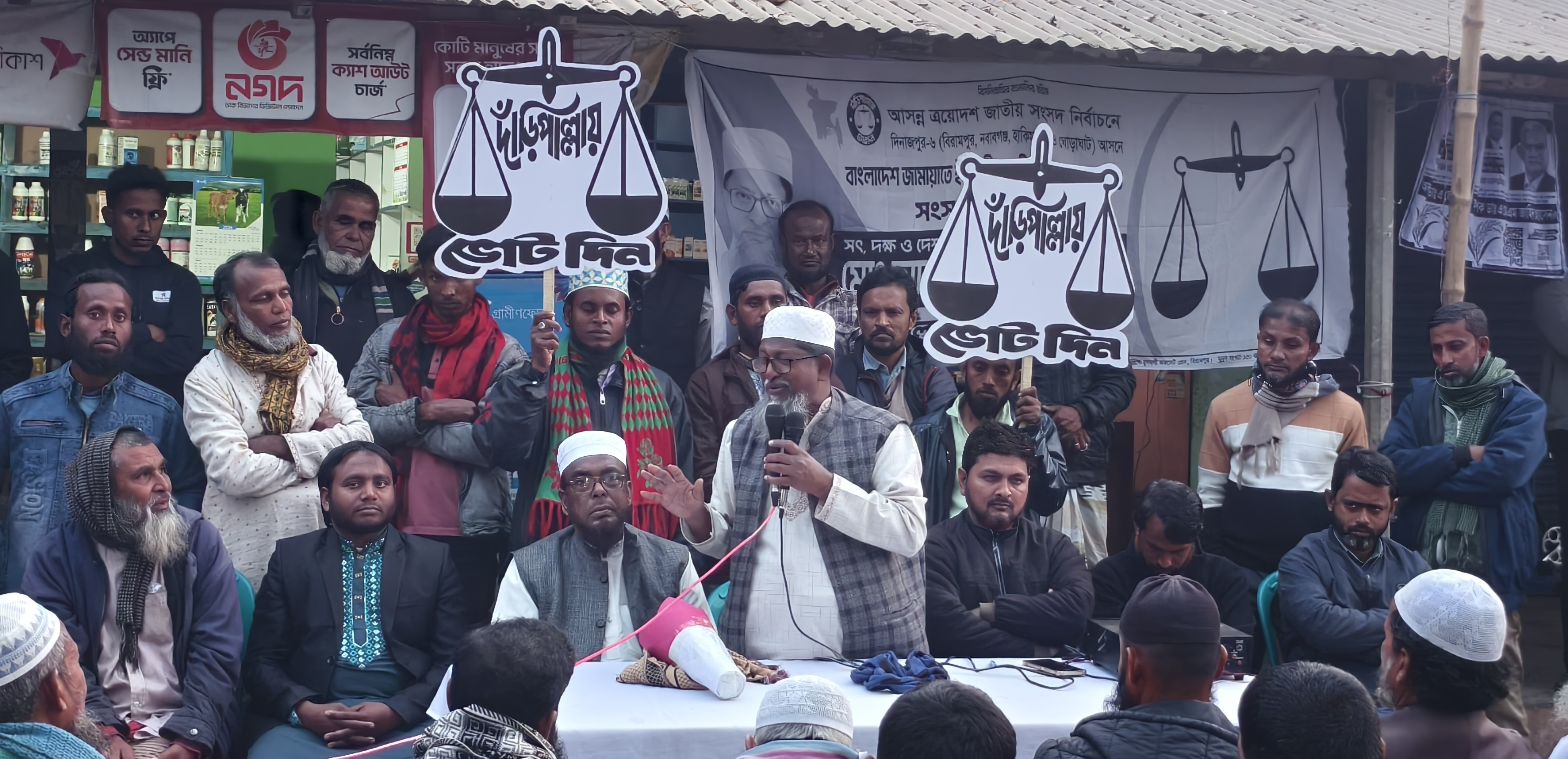 নবাবগঞ্জে জামায়াতে ইসলামীর নির্বাচনী মিছিল ও পথসভায় প্রার্থী আনোয়ারুল ইসলাম