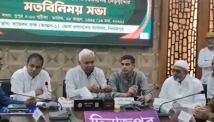 শুক্রবার (১৩ মার্চ) বিকেলে দিনাজপুর জেলা প্রশাসক সম্মেলন কক্ষ ‘কাঞ্চন’ এ জেলা প্রশাসনের কর্মকর্তাবৃন্দ ও জেলা বিএনপির নেতৃবৃন্দের মতবিনিময় সভায় এ কথা জানান তিনি।